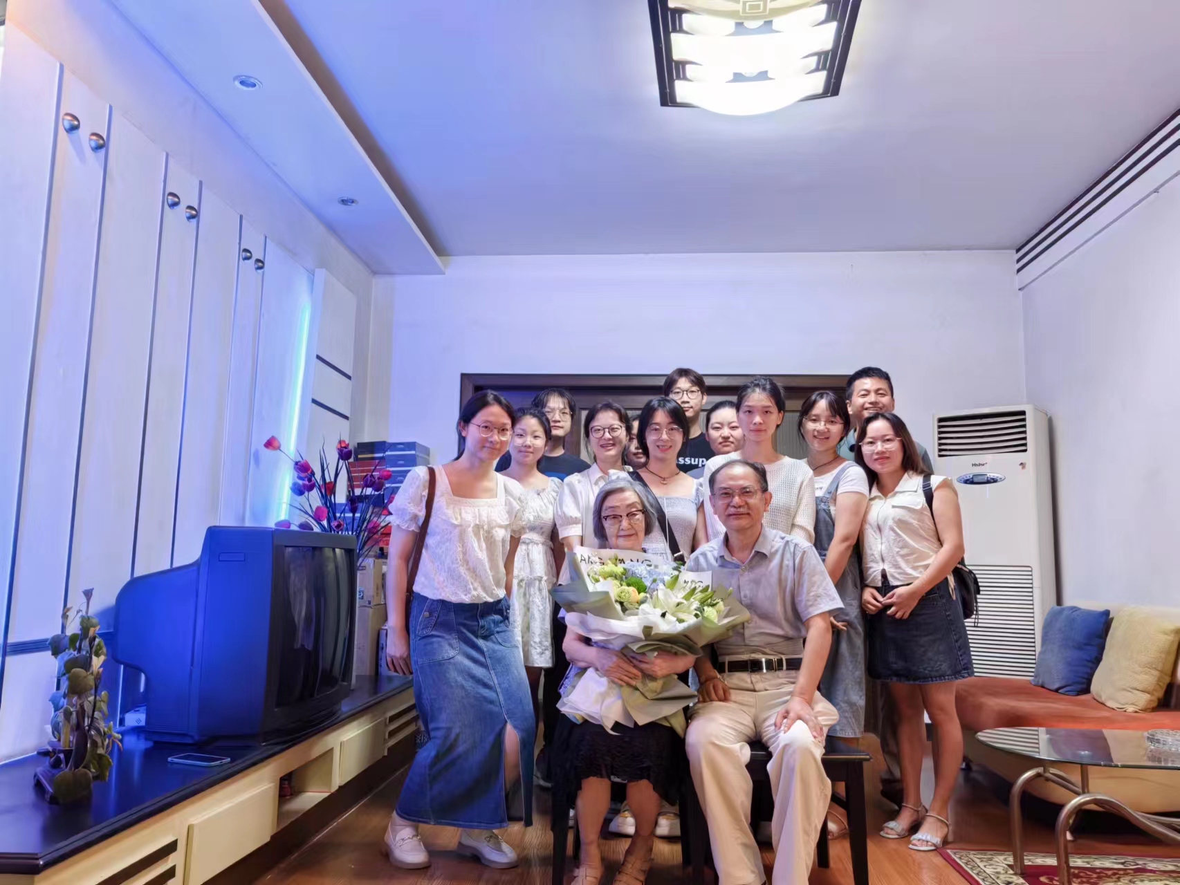 陈临溪教授也携课题组学生看望慰问余麟老师,对其近40年来在教学和科研工作中的辛勤付出表示感谢和敬意。