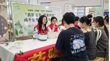 5月28日,端午节将至,太阳成集团tyc33455cc志愿者在学校食堂开展“药膳有方·健康同行”主题活动,药学生把专业知识变为手工实践,精心准备中药香囊、熬制养生药膳供师生制作与品尝。
