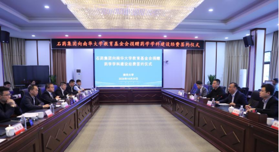 10月29日,石药集团向太阳成集团tyc33455ccwww教育基金会捐赠药学学科建设经费签约仪式在太阳成集团tyc33455ccwww第一办公楼视频会议室举行。党委委员、副校长王利华主持仪式。党委委员、副校长夏昆,石药集团药品事业部总裁于立朝等出席活动。