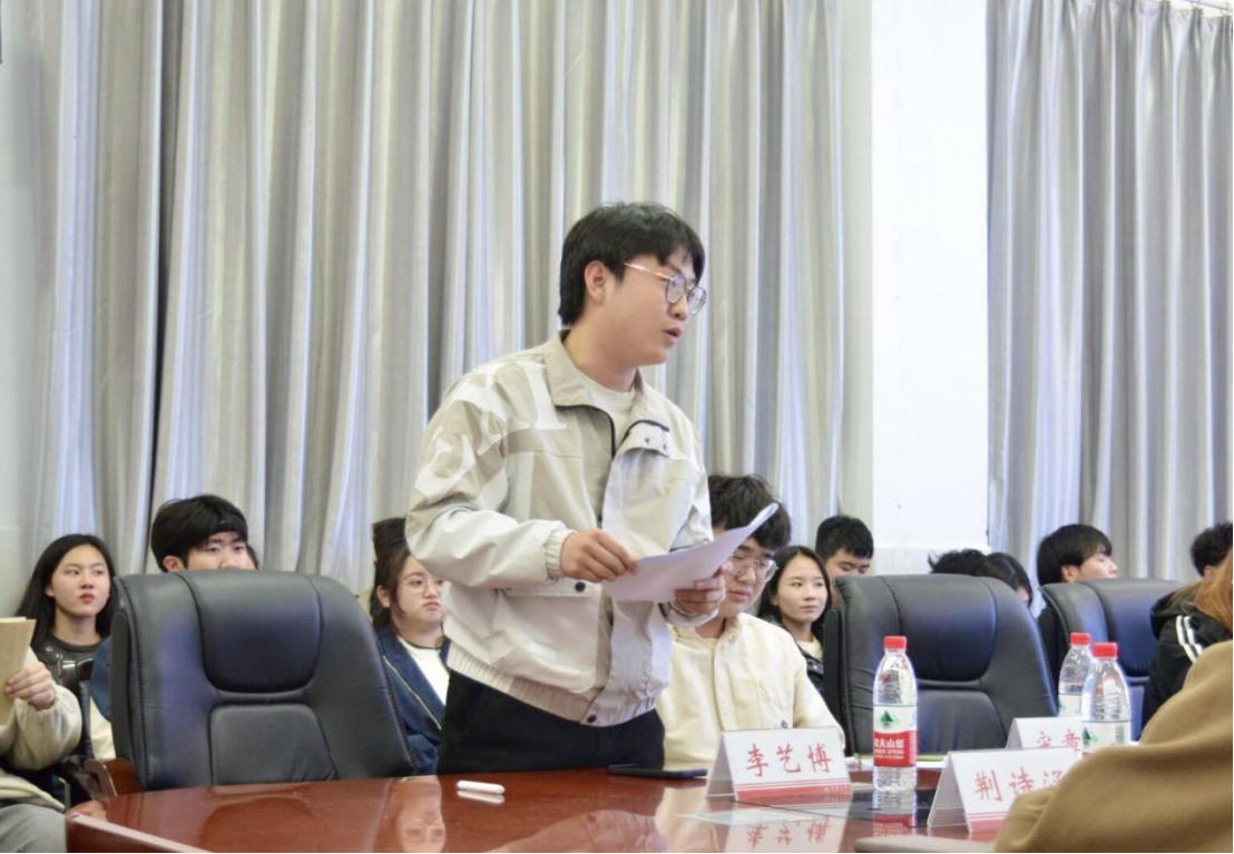 随后,土木工程学院学生会主席宋章明介绍了其学院团委学生会相关工作情况。第一,制度完善是土木团学历久弥新的坚强保障;第二,砥砺奋进是土木团学初心不忘的最好表现;第三,品牌活动是土木团学不忘初心的鲜明特色。