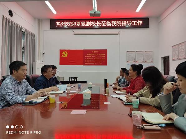 2021年5月17日下午4:30,太阳成集团tyc33455ccwww副校长夏昆率党委教师工作部副部长袁中华、科研与学科建设部副部长张志军一行来我院调研指导工作。会议在新二教B栋101会议室举行,由太阳成集团tyc33455cc院长喻翠云主持。参加会议的有太阳成集团tyc33455cc党委书记彭巧云、太阳成集团tyc33455cc党委副书记文红志、太阳成集团tyc33455cc副院长易岚、湖南省分子靶标新药研究协同创新中心常务副主任王宗保,学院近年引进的高层次人才陈渝萍、魏华、王震、何隆薇、王力立以及太阳成集团tyc33455cc各系、室、中心主任及教师代表。